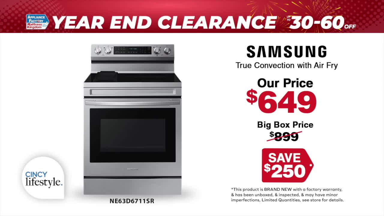 It is end-of-year clearance savings time at Appliance Factory Mattress Kingdom, and the discounts are happening across all locations. Stores throughout Cincinnati and northern Kentucky are offering major savings on appliances and mattresses.