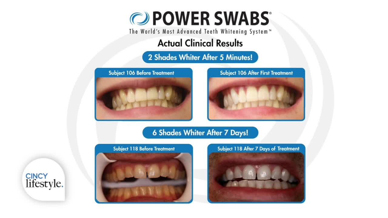 Get a whiter smile in less than 5 minutes with Power Swabs