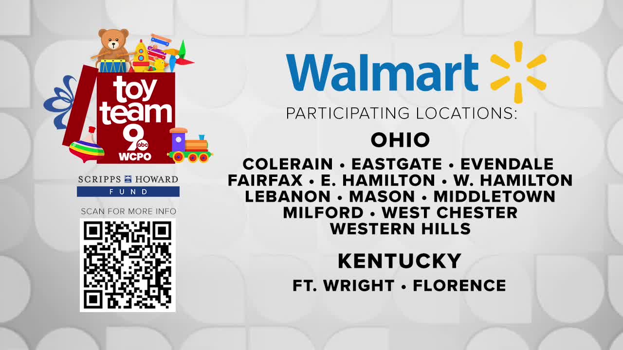 Toy Team 9 is back for its biggest year yet. WCPO 9 is teaming up with 14 Walmart locations across the Tri-State on Dec. 6 from 8am to 4pm to collect toys for 14 local nonprofits. Every donation stays within the community where it is given, making it easy to help a child right in your neighborhood.