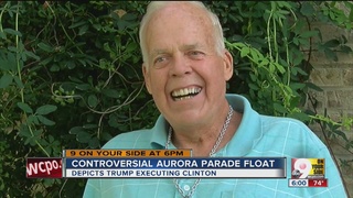 Some Aurora, Indiana, residents here are up in arms over a parade float depicting Donald Trump throwing the switch on Hillary Clinton in the electric chair and President Obama as a Easter Island figure.with an oversized head.