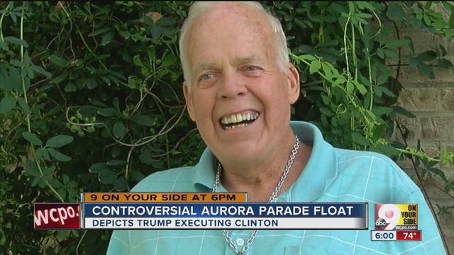AURORA, Ind. – Residents in Indiana are up in arms over a parade float Saturday that depicted Donald Trump throwing the switch on Hillary Clinton in an electric chair and President Obama as a Easter Island figure with an oversized head.