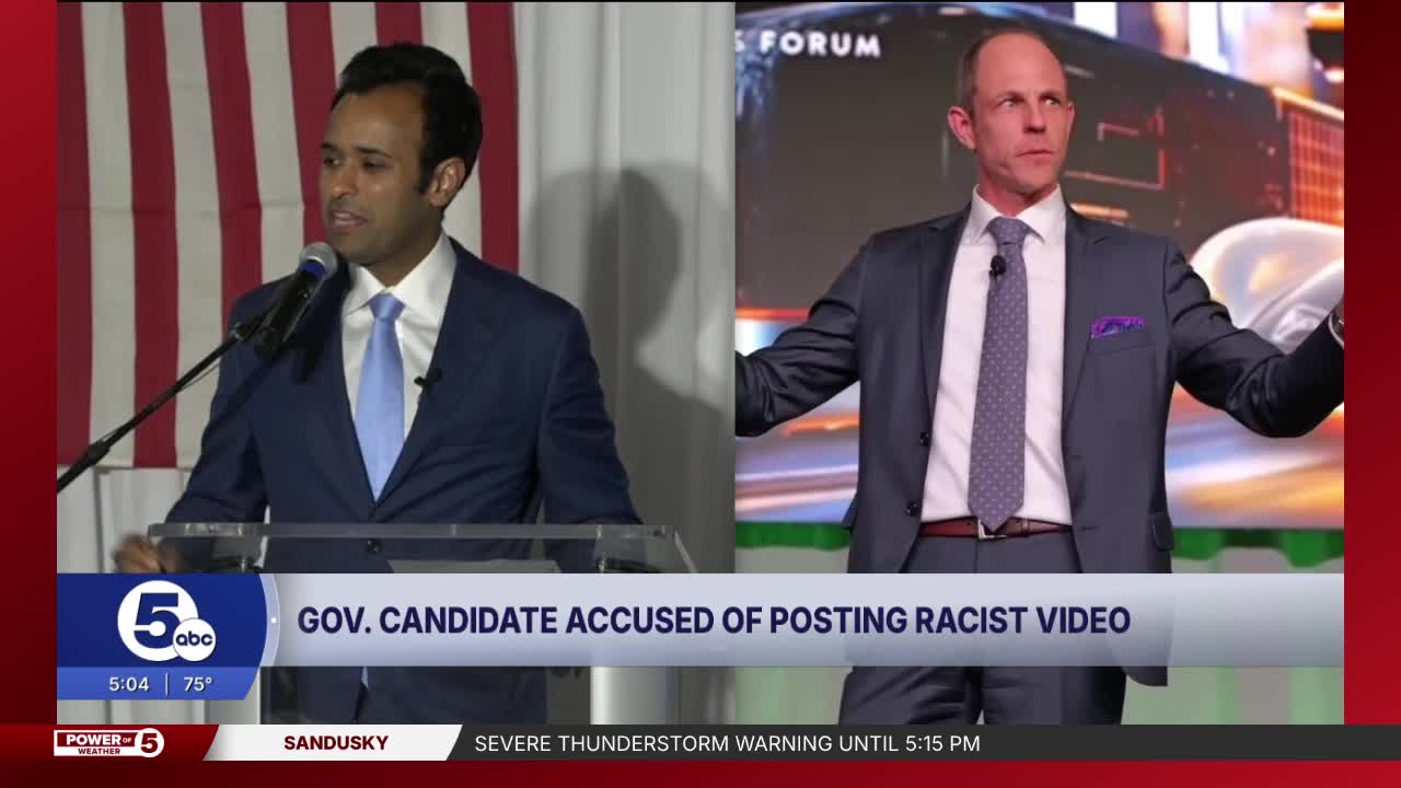 COLUMBUS, Ohio — A candidate running to be Ohio's Republican nominee for governor has a new social media video targeting frontrunner Vivek Ramaswamy — and it is raising concerns due to racist language and the use of a weapon.
