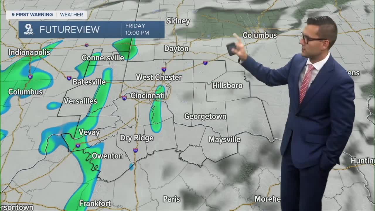 Sunday will be mostly sunny and ideal with a high of 72 degrees. If you are headed up to Cleveland to watch the Bengals in the season opener, it's going to be a great day for football! Temperatures will be in the mid-60s with a mostly sunny sky and a breezy northwest wind.