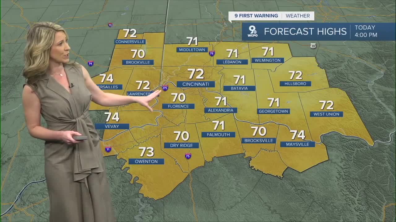 Tonight, the sky stays mostly cloudy and this leads to another warmer night. We'll only cool to 62 degrees.