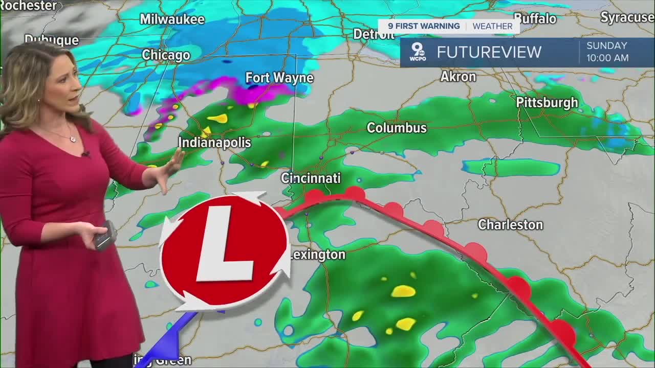 Sunday is also cloudy, but Sunday's forecast is a bit more complicated as an area of low pressure moves through the Ohio Valley during the day.