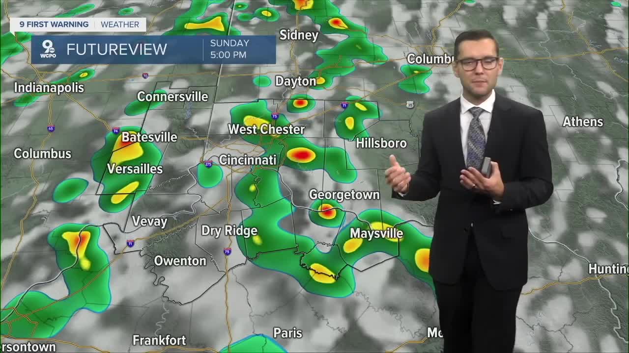 Sunday starts on the warm side at 64 degrees and it will feel stickier outside. The sky will be mostly cloudy too. It's in the late morning and early afternoon that isolated showers and storms start moving into our area. This isn't a guaranteed rain chance for every location, but it's the best chance we've seen in a week. The high on Sunday still rises to the mid 80s.