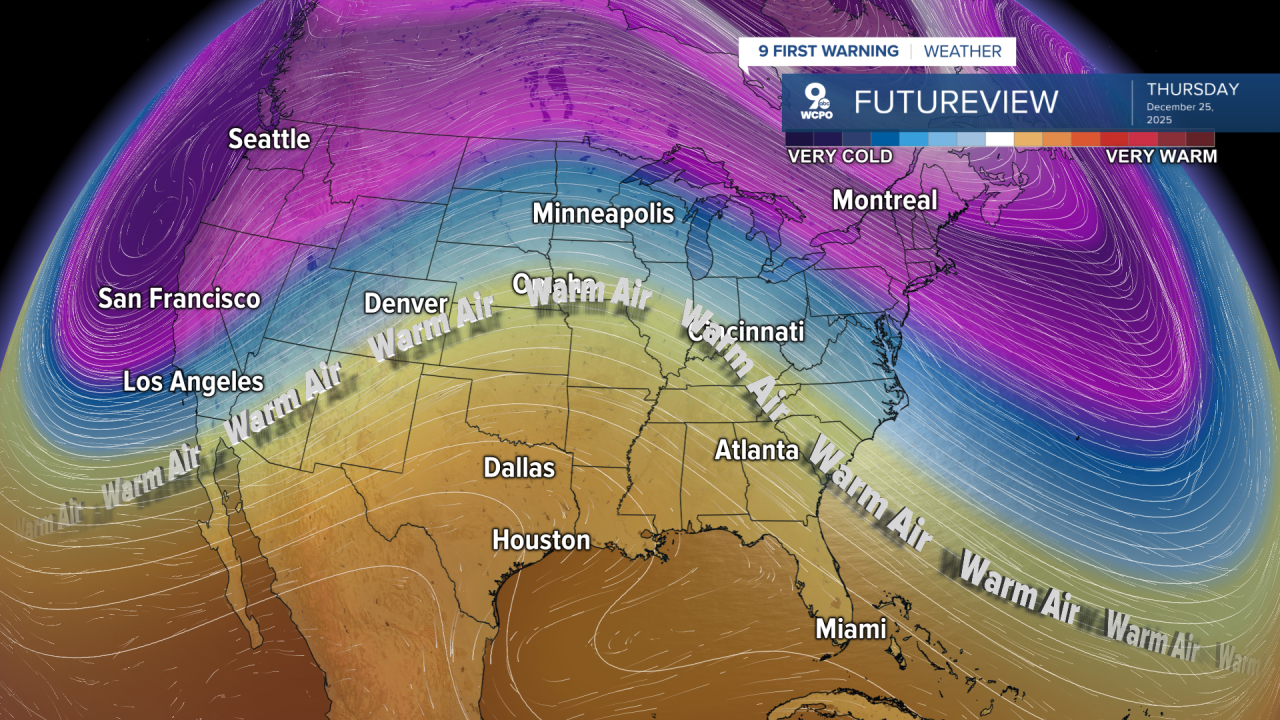 We move to Wednesday, where showers will break out once again during the evening hours and will last until early on Christmas Day. However, some indications show a chance for Northern Kentucky throughout the day. With the wet weather, highs will back back a bit near 60 degrees before rising into the low 60s for Friday and Saturday.