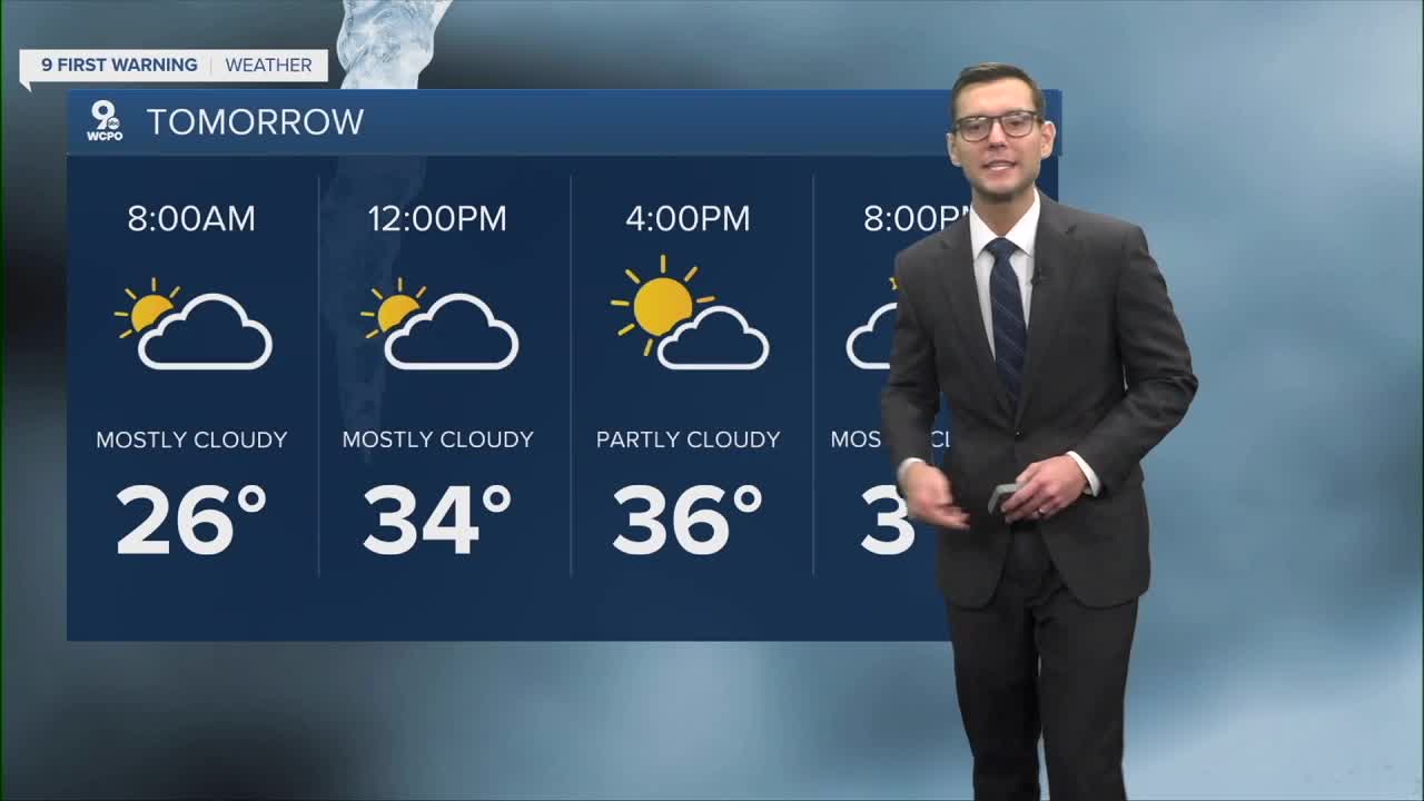Thanks to the northerly winds today, temperatures only reach the low 30s but we do see decreasing clouds.