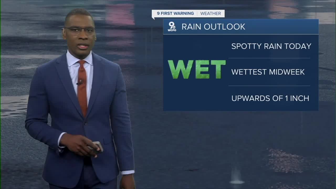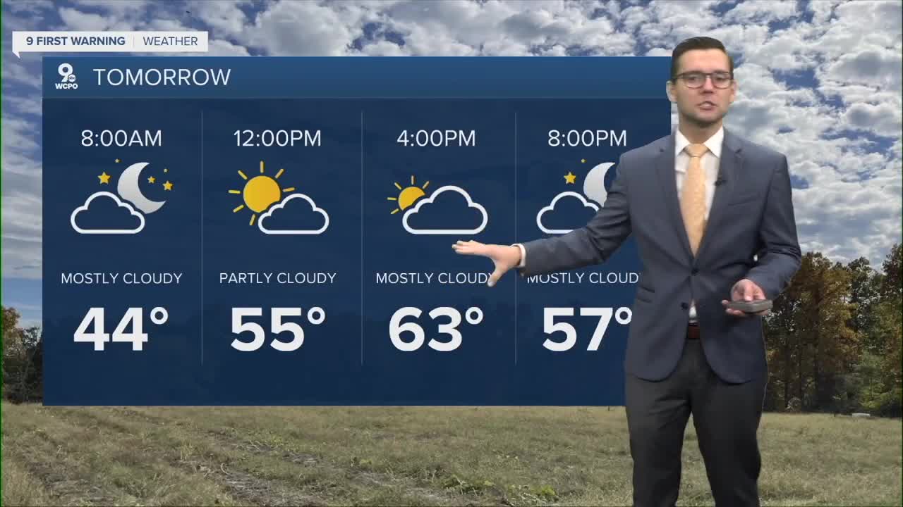 Mostly cloudy skies will hang tight throughout the morning, so a few light showers cannot be ruled out for tailgaters before the game. The best coverage for rain is mainly south of the Ohio River across Northern Kentucky.