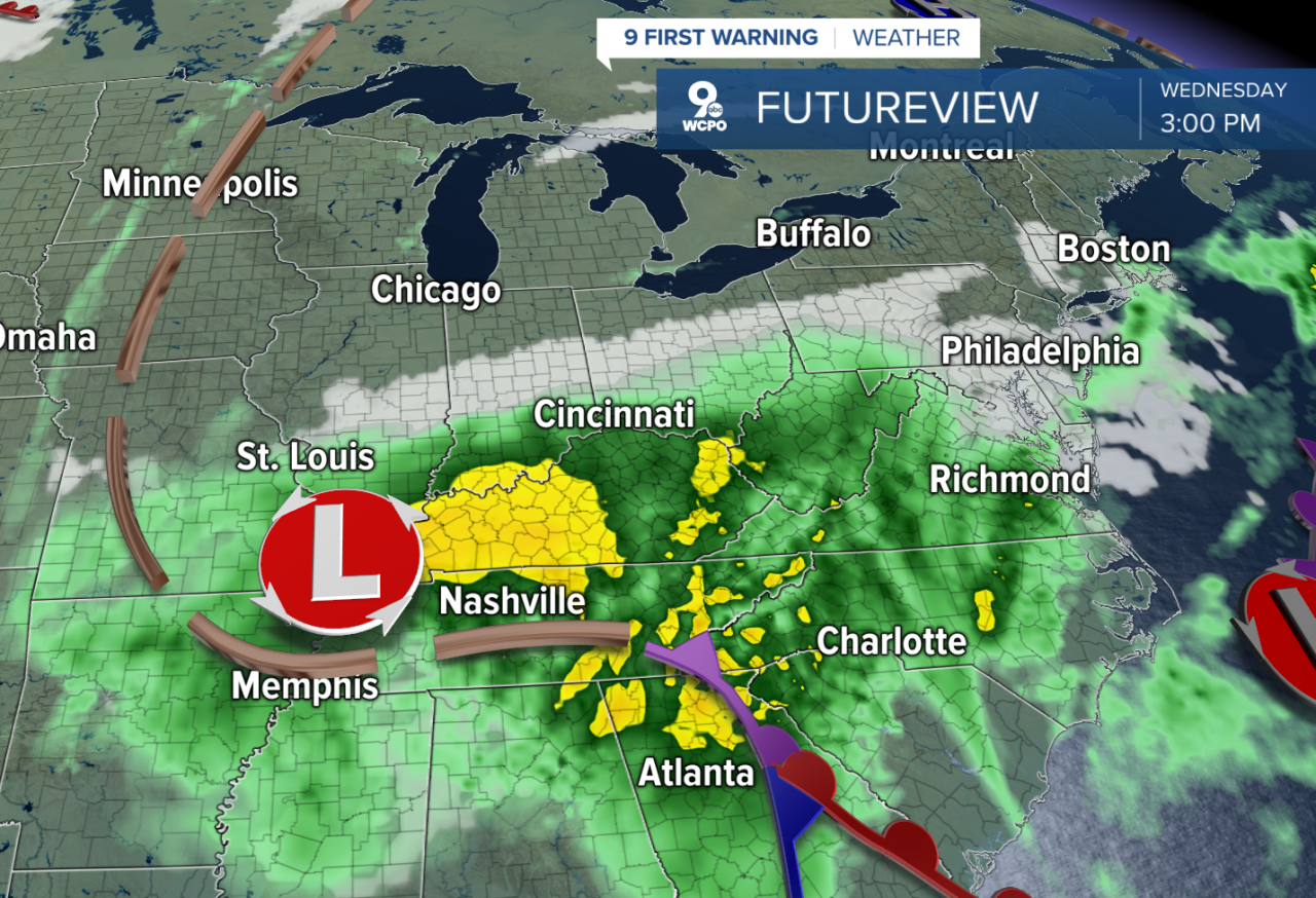 An area of low pressure will trigger rain starting near midnight, and the wet weather really kicks in on Wednesday. Wednesday will be an umbrella day as rain will increase into the evening hours and continue with leftover showers on Thursday.