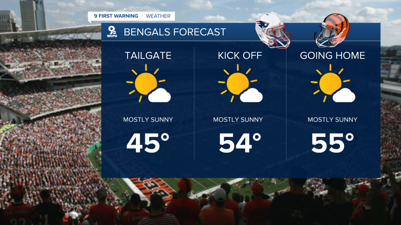 A foggy start for some but sunshine quickly takes over and temperatures push a touch above average, into the mid 50s. This makes for some great weather for both the Bengals & FC Cincinnati.