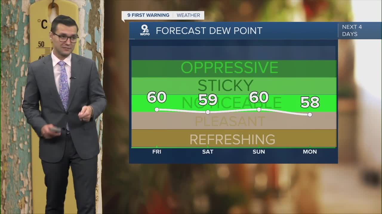 For this evening, the Friday night football forecast is looking fantastic. We'll be around 71 degrees at kickoff with a clear sky. You won't notice the humidity this evening either.
