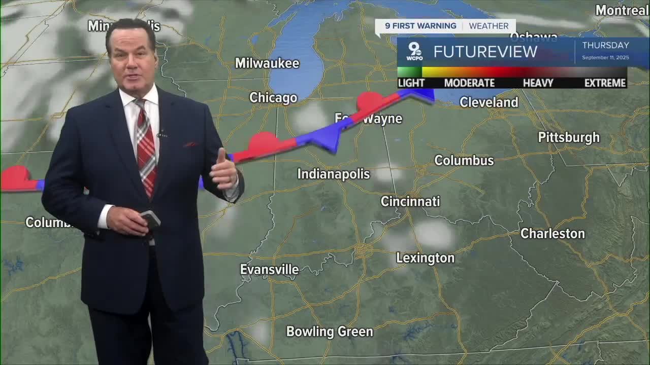 By Thursday and into the weekend, southerly winds will kick the temperatures into the mid to upper 80s by Sunday. It's going to be on the hot side for the Bengals' home opener.