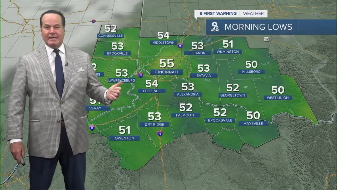 So for the morning, we'll see clear conditions, and with the dry air out of the north, temperatures will drop in the low to mid-50s by daybreak. While we'll see sunshine in the morning, a cold front will change the conditions in the afternoon.