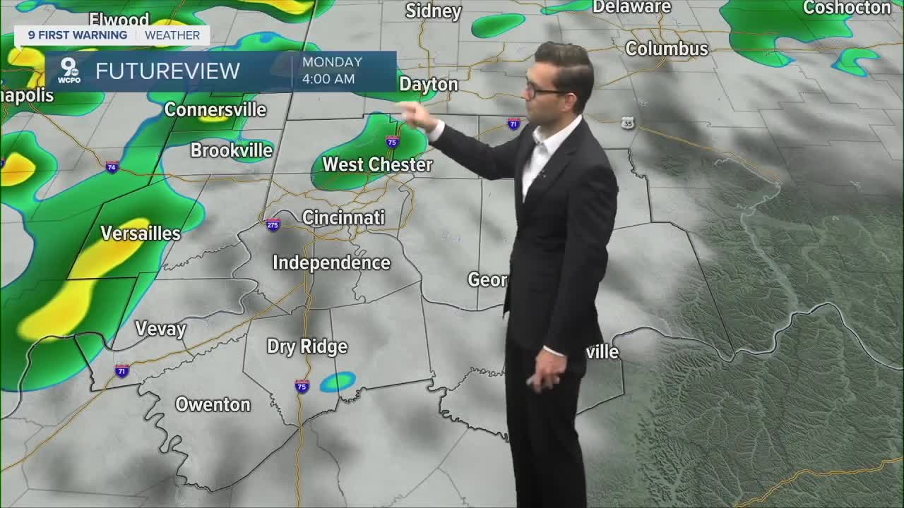 Tomorrow, the warm-up really kicks in! It’ll be mostly sunny skies and highs into the low to mid 80s as a mid-level ridge builds over the Ohio Valley, which supports that warmer setup. Sunday night brings a slight chance of showers after 2 AM with a low around 67.