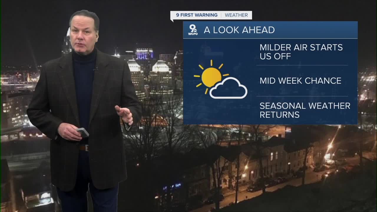 Monday will be noticeably milder with highs near 39 and a nighttime drop into the mid-20s. That moderation continues Tuesday with highs rising into the upper 40s under mostly cloudy skies and lows only falling to near freezing. By mid-week, temperatures will trend back downward as highs on Wednesday cool to the upper 30s with brisk winds and a cold overnight again. Thursday and Friday will remain on the chilly side with mostly cloudy skies keeping highs in the 30s and lows again in the low to mid-20s.