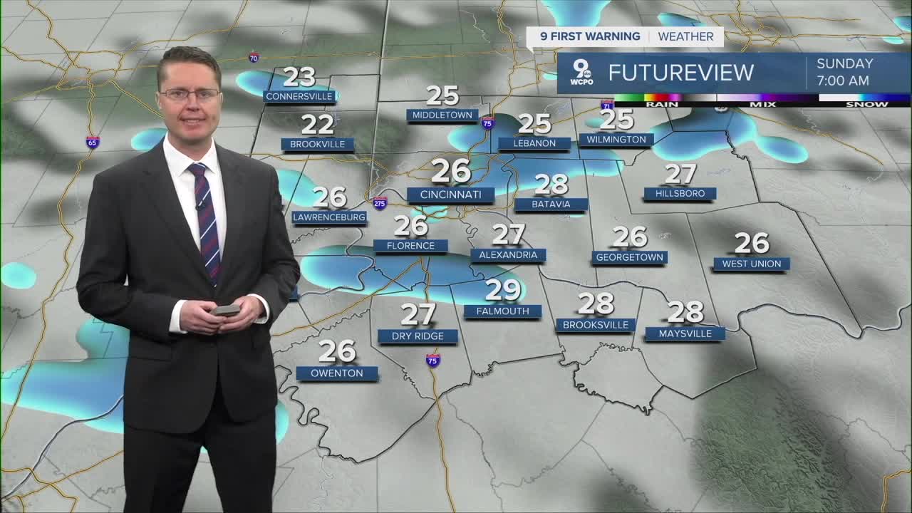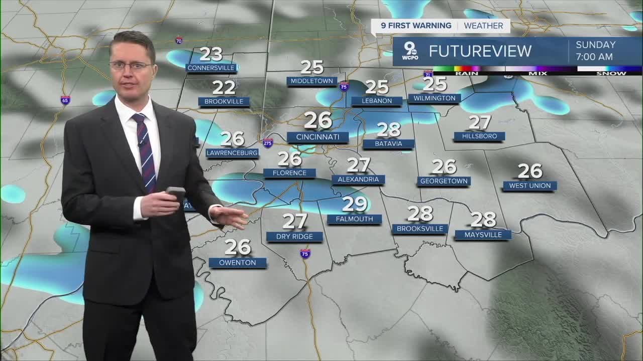 After midnight, scattered snow will move into the Tri-State which continues into Sunday morning. Any pocket of snow could reduce visibility for drivers and could make for a few slippery spots. The bulk of the snow should end by late Sunday morning with any accumulation under an inch.