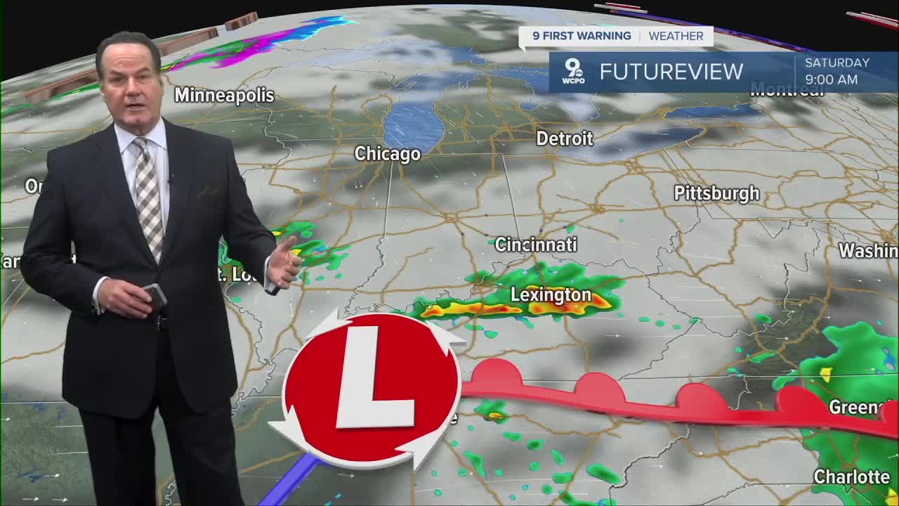 As the rain tapers off, clouds will remain in place with temperatures holding steady in the mid-40s. Fog has developed in spots, and visibility will drop to a 1/4 mile or less by daybreak. Plus, we'll see some drizzle too before daybreak.