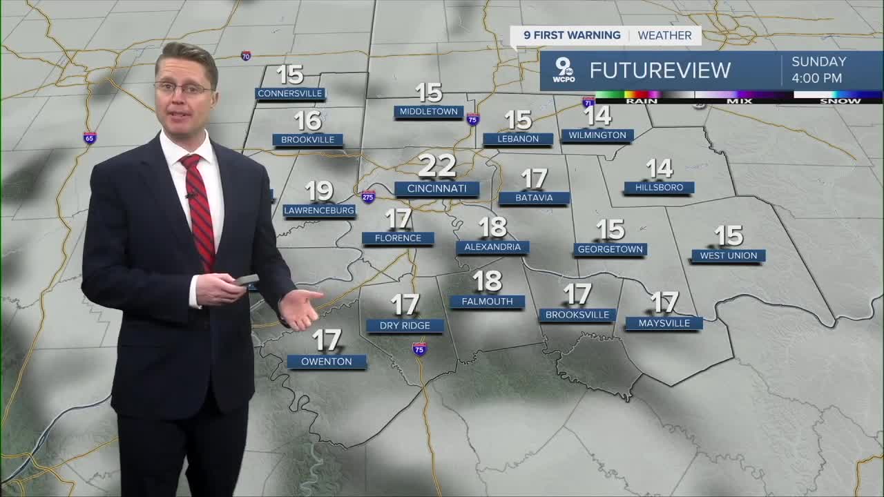 Sunday afternoon brings a little more sunshine and a little more warmth, but highs will still be well below the average of 41 in Cincinnati. Upper teens and low 20s will be common for the afternoon.