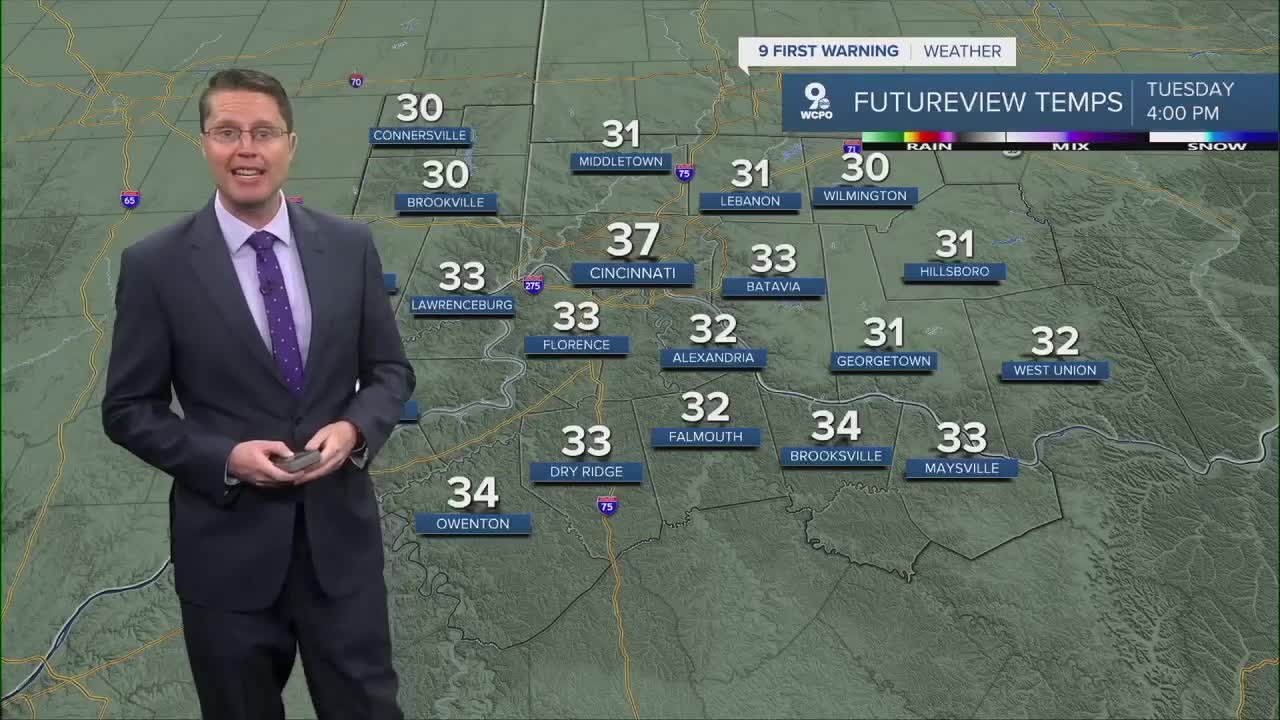 We warm up nicely in the afternoon with a lot of sunshine. Around the lunch hour, we push back above freezing, then we warm into the upper 30s late in the afternoon.