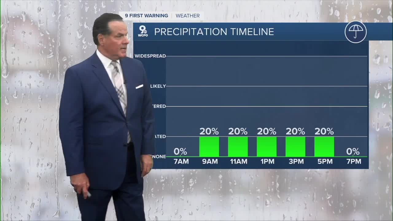 Through the day, the sunshine will compete with clouds, and we'll stay mainly dry with only a slight chance for an isolated shower to pop up. Highs will reach from the low to mid-80s. Same temps for Thursday with more sunshine.