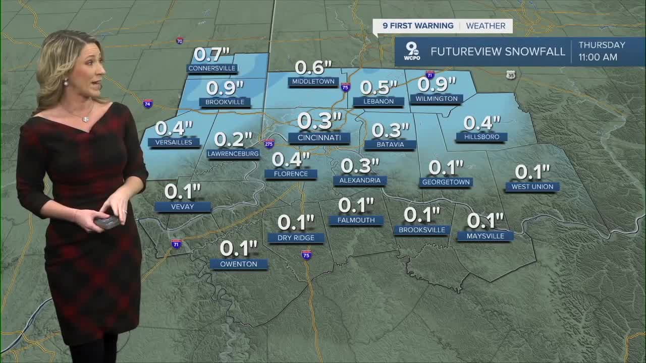 The amount of snow won't be a repeat of what we had Monday night, but it will be enough to create some slick spots. If you are north of the Ohio River, 0.5" of snow is possible, and some could see up to 1" of snow. To the south, it's a dusting or no snow at all.