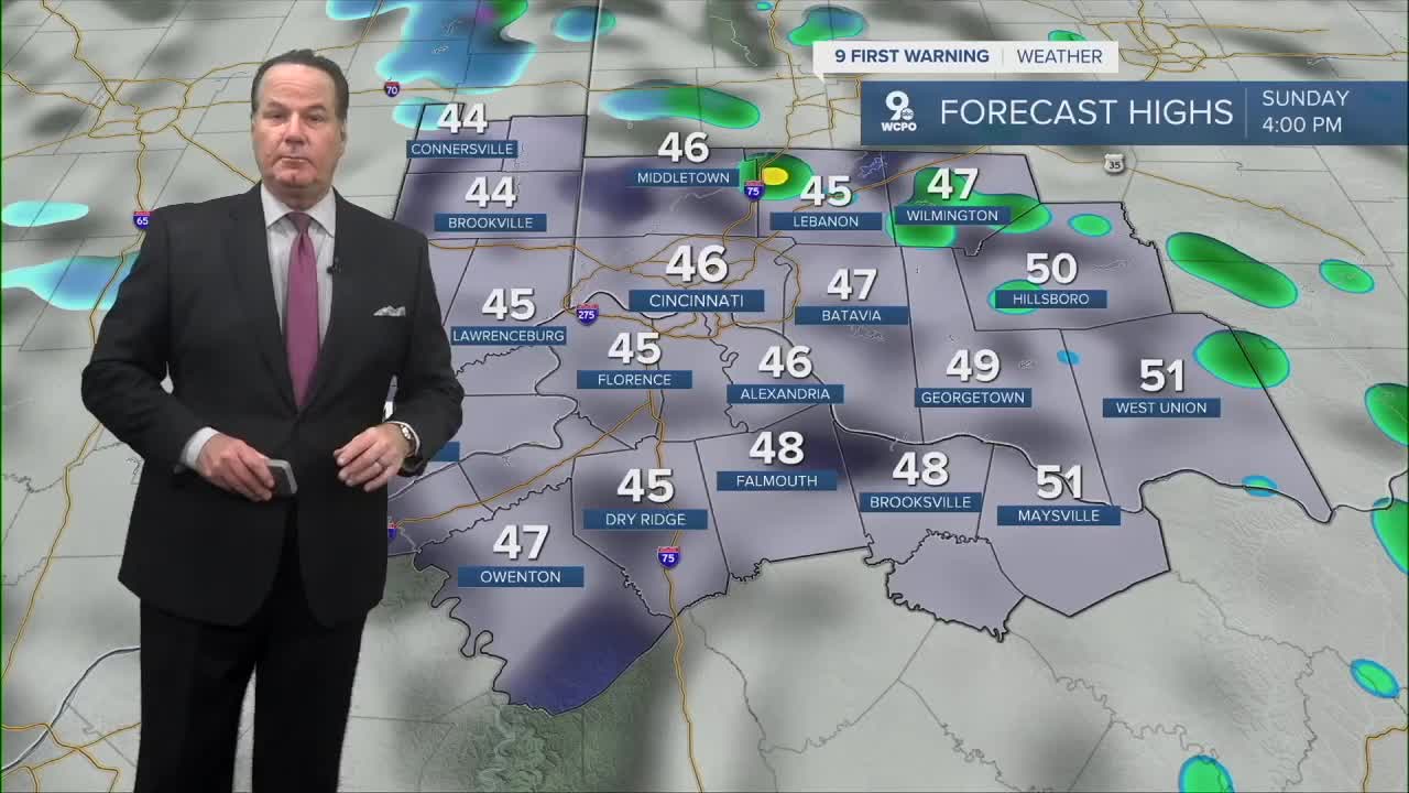 Sunday is all about the arctic cold air! We'll see temperatures in the mid-40s on Sunday, and they'll get colder as the day continues. This will give us wind chills in the mid to low 30s later in the day.