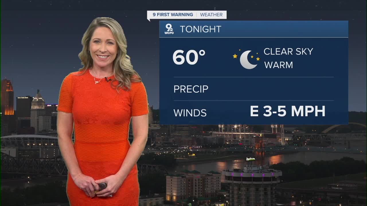 High pressure will still be in control tomorrow and this will mean another day of sunshine and warmer-than-average temperatures. We should top out around 84 degrees on Tuesday. Winds will be light from the northeast. Humidity remains low in the area yet again.