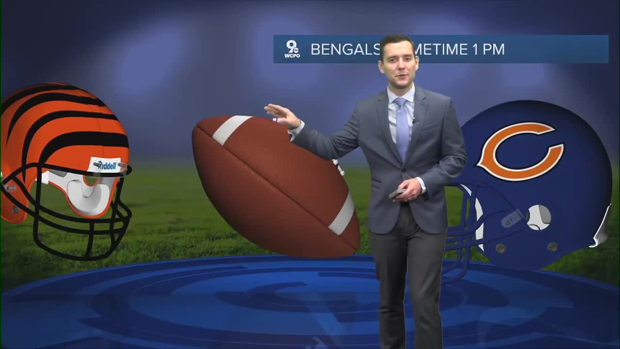 Once those showers move out early Sunday, the day looks pleasant overall with partly sunny skies, light winds, and afternoon highs again in the mid-50s. It will feel seasonably cool for the Bengals' 1 p.m. kickoff against the Bears, with a light northeast breeze keeping a little chill in the air at Paycor Stadium.