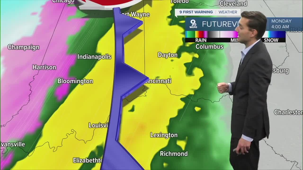 Rain could be fairly steady overnight before colder air quickly rushes in behind the front. By Monday morning, the rain may mix with or briefly change over to snow showers. Snow accumulation looks light, generally less than a half inch, but the bigger story will be the sharp drop in temperatures.