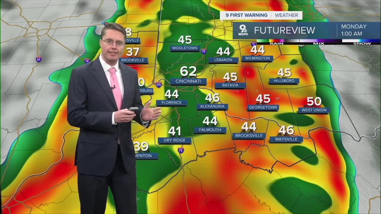 Temperatures will be above average into Sunday morning with low 40s common across Greater Cincinnati.