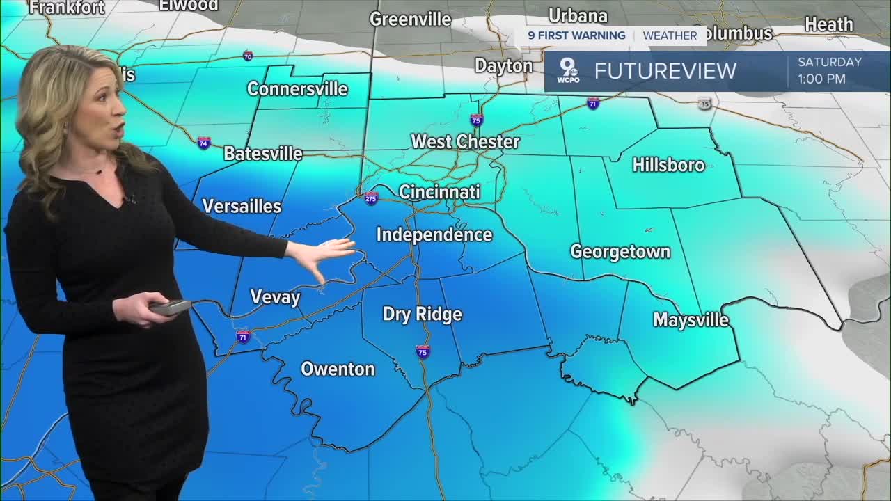 SATURDAY MORNING: The day starts dry, cold and cloudy. Snow will begin to fall in our southern locations between 10 a.m. to noon. This will be very light to start.