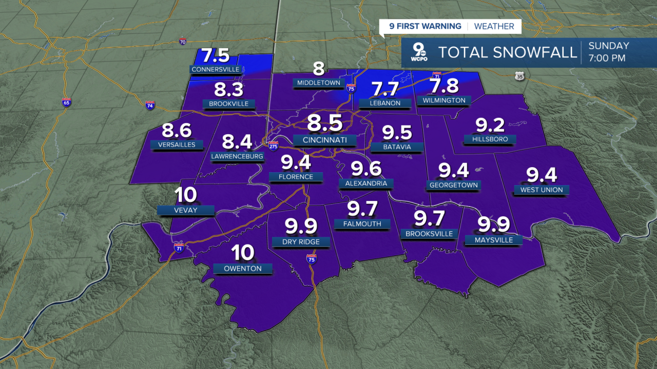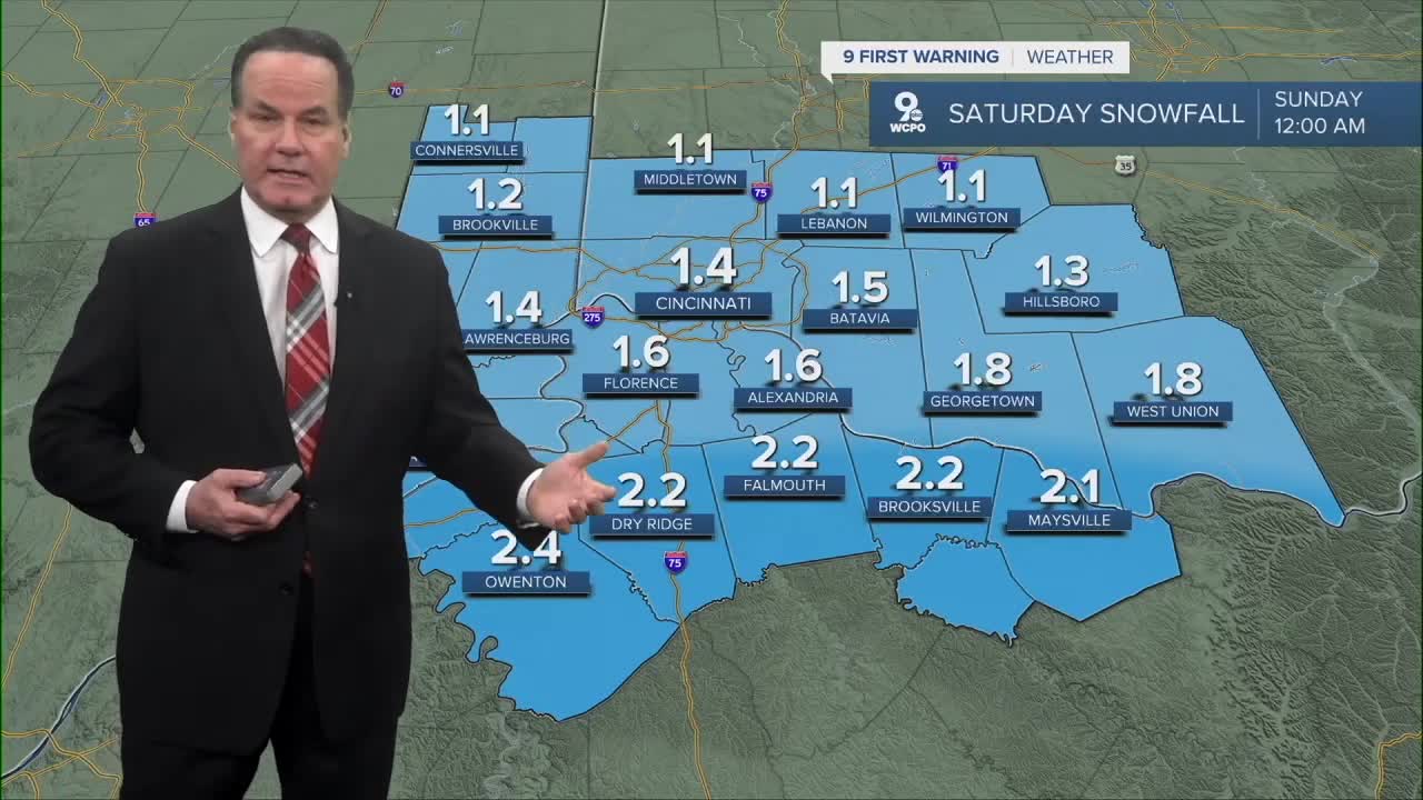 Snow will begin to fall in our southern locations between 10 a.m. and noon. This will be very light to start and will fall around the Greater Cincinnati area between 12 pm and 2 pm.